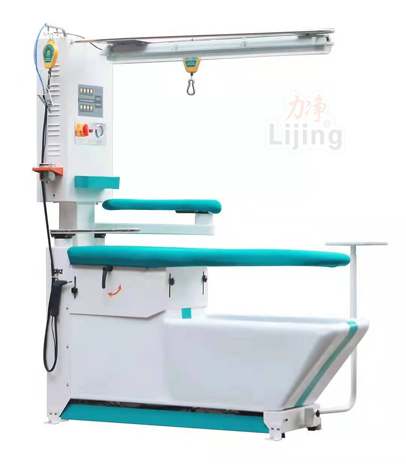 配有冷熱去漬槍和不銹鋼去漬臺面,在熨燙過程中,可隨時進行去漬處理,提高功效、方便快捷。